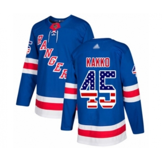>Youth New York Rangers #45 Kaapo Kakko Authentic Royal Blue USA Flag Fashion Hockey Jersey