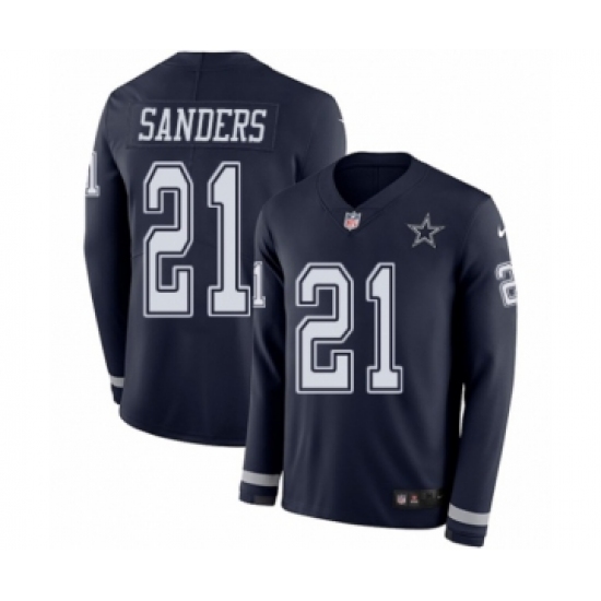 Youth Nike Dallas Cowboys #21 Deion Sanders Limited Navy Blue Therma Long Sleeve NFL Jersey