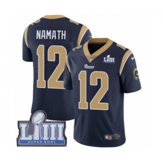 Youth Nike Los Angeles Rams #12 Joe Namath Navy Blue Team Color Vapor Untouchable Limited Player Super Bowl LIII Bound NFL Jersey