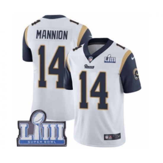 Men's Nike Los Angeles Rams #14 Sean Mannion White Vapor Untouchable Elite Player Super Bowl LIII Bound NFL Jersey