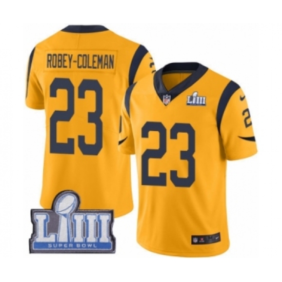 >Youth Nike Los Angeles Rams #23 Nickell Robey-Coleman Limited Gold Rush Vapor Untouchable Super Bowl LIII Bound NFL Jersey