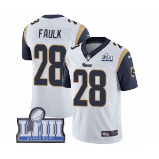 Youth Nike Los Angeles Rams #28 Marshall Faulk White Vapor Untouchable Limited Player Super Bowl LIII Bound NFL Jersey