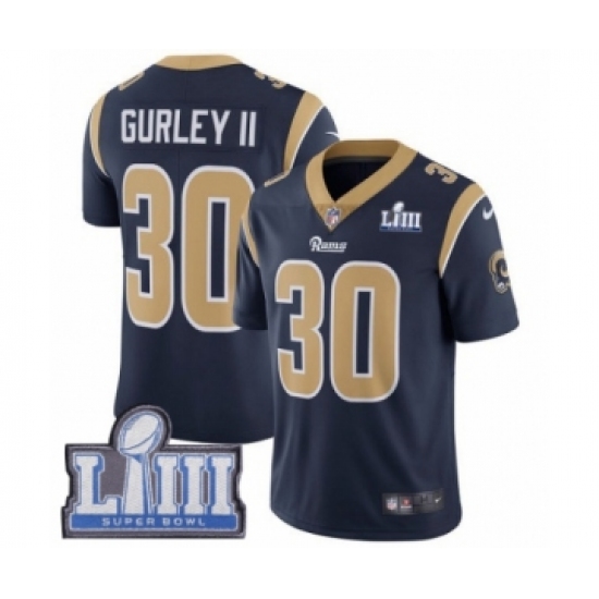 Men's Nike Los Angeles Rams #30 Todd Gurley Navy Blue Team Color Vapor Untouchable Elite Player Super Bowl LIII Bound NFL Jersey