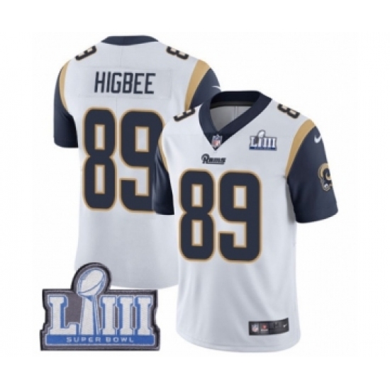 >Youth Nike Los Angeles Rams #89 Tyler Higbee White Vapor Untouchable Limited Player Super Bowl LIII Bound NFL Jersey