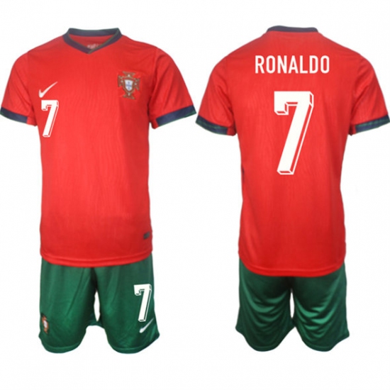 Youth Portugal Team #7 Ronaldo 2024-25 Red Home Soccer Jersey Suit