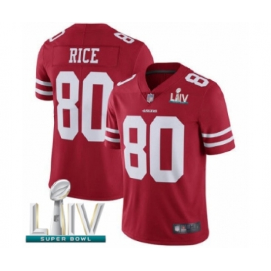 Youth San Francisco 49ers #80 Jerry Rice Red Team Color Vapor Untouchable Limited Player Super Bowl LIV Bound Football Jersey