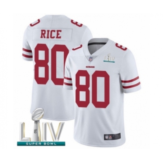 >Youth San Francisco 49ers #80 Jerry Rice White Vapor Untouchable Limited Player Super Bowl LIV Bound Football Jersey