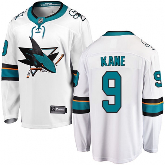 >Youth San Jose Sharks #9 Evander Kane Fanatics Branded White Away Breakaway NHL Jersey