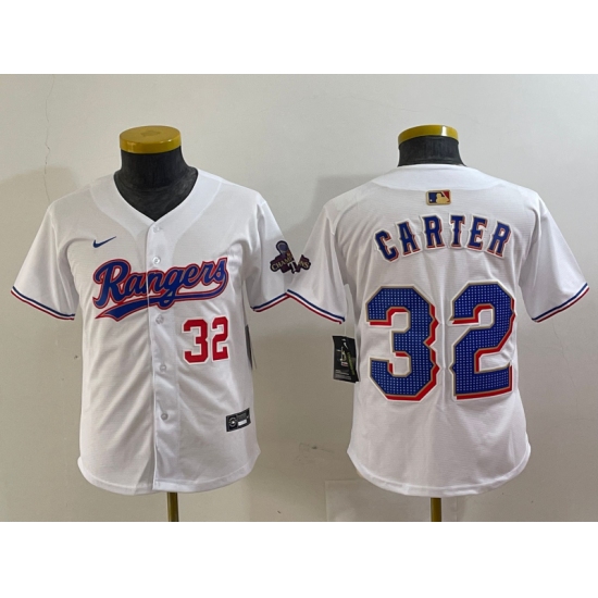 Youth Texas Rangers #32 Evan Carter Number White 2024 Gold Collection Limited Cool Base Jersey