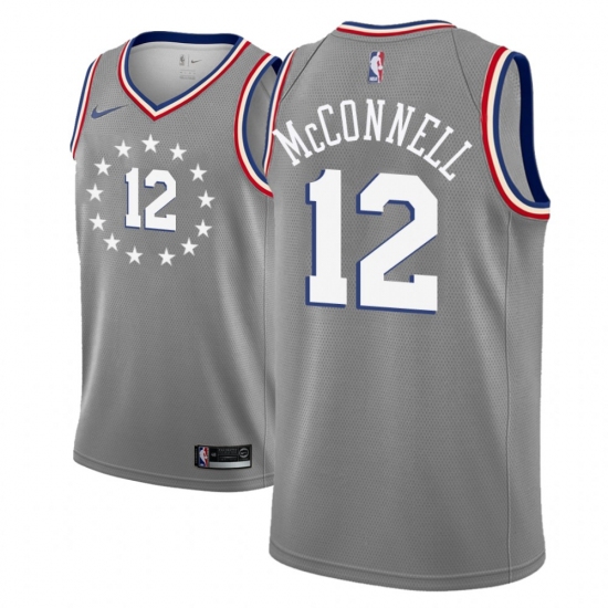 >Men NBA 2018-19 Philadelphia 76ers #12 T J McConnell City Edition Gray Jersey