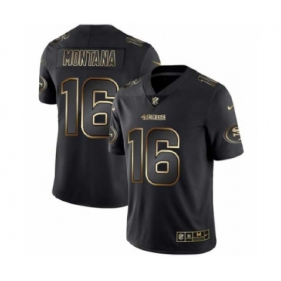 Men San Francisco 49ers #16 Joe Montana Black 2019 Vapor Limited Golden Edition Jersey