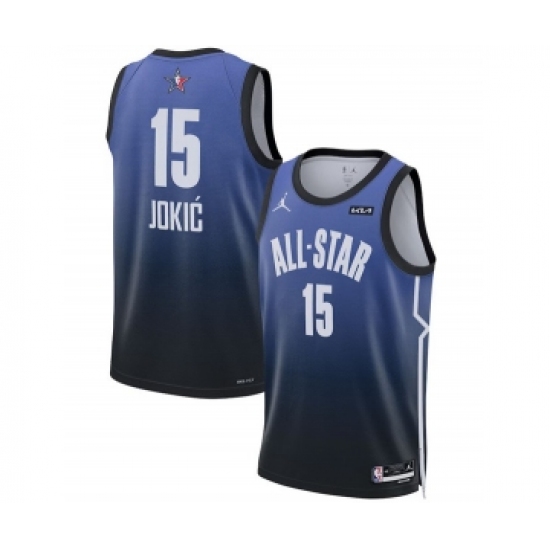 >Men's 2023 All-Star #15 Nikola Jokic Blue Game Swingman Stitched Basketball Jersey