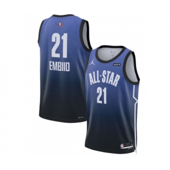 Men's 2023 All-Star #21 Joel Embiid Blue Game Swingman Stitched Basketball Jersey