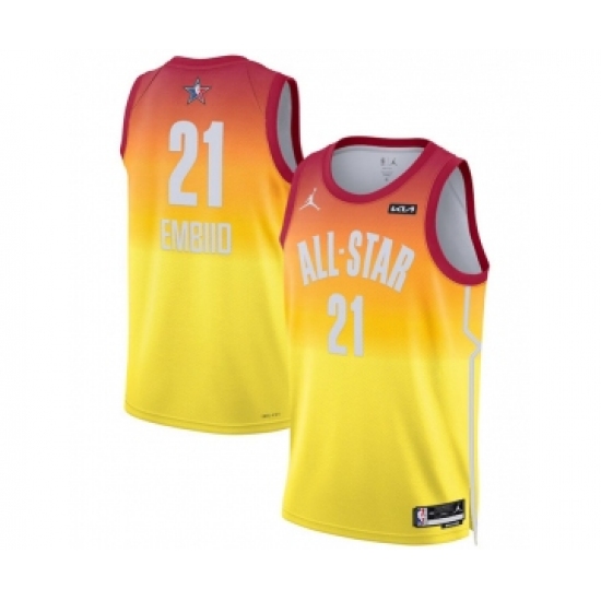 Men's 2023 All-Star #21 Joel Embiid Orange Game Swingman Stitched Basketball Jersey