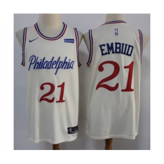 Men's Philadelphia 76ers #21 Joel Embiid Swingman Cream Basketball Jersey - 2019 20 City Edition