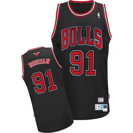 Men's Adidas Chicago Bulls #91 Dennis Rodman Authentic Black Throwback NBA Jersey