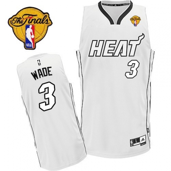 Men's Adidas Miami Heat #3 Dwyane Wade Authentic White On White Finals Patch NBA Jersey