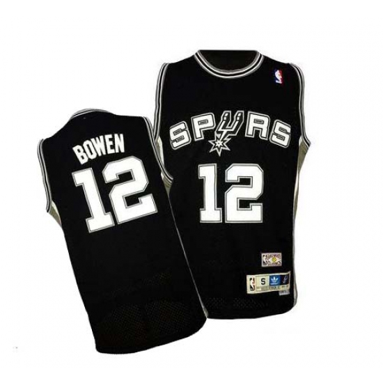 Men's Adidas San Antonio Spurs #12 Bruce Bowen Authentic Black Throwback NBA Jersey