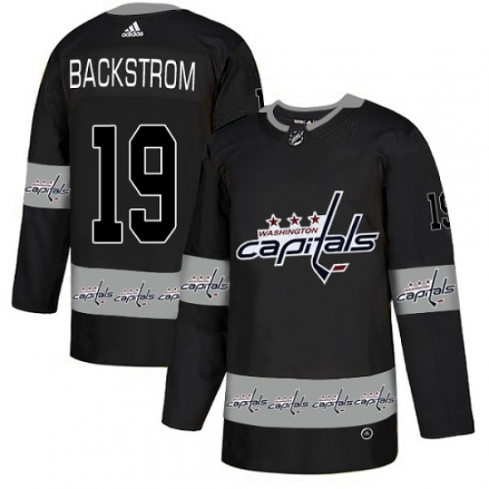 Men's Adidas Washington Capitals #19 Nicklas Backstrom Authentic Black Team Logo Fashion NHL Jersey