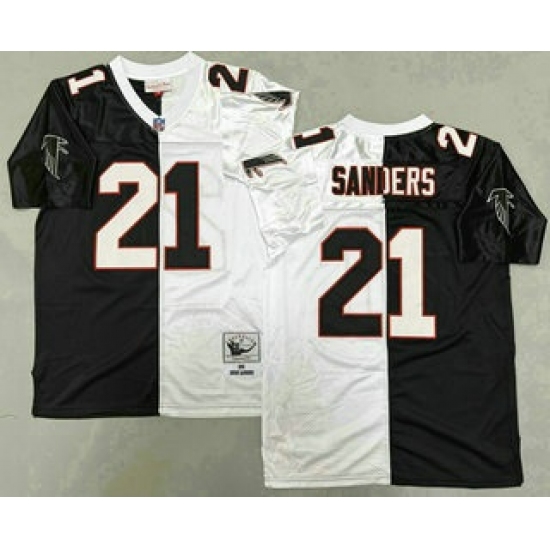 >Men's Atlanta Falcons #21 Deion Sanders Black White Split 1992 Throwback Jersey