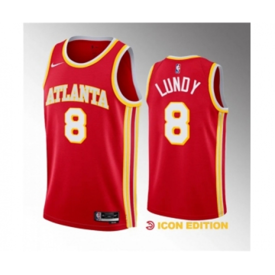 >Men's Atlanta Hawks #8 Seth Lundy Red 2023 Draft Icon Edition Stitched Jersey