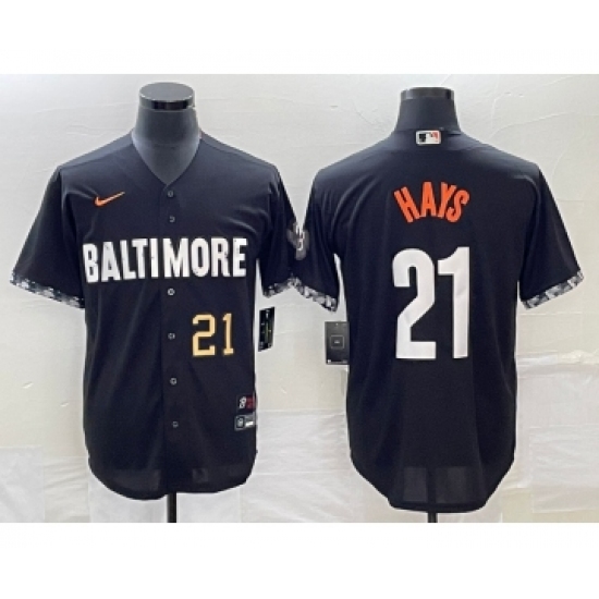 Men's Baltimore Orioles #21 Austin Hays Black 2023 City Connect Cool Base Stitched Jersey