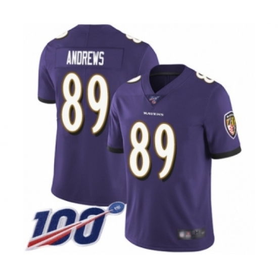 Men's Baltimore Ravens #89 Mark Andrews Purple Team Color Vapor Untouchable Limited Player 100th Season Football Jersey