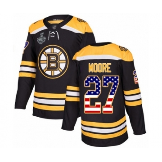 Men's Boston Bruins #27 John Moore Authentic Black USA Flag Fashion 2019 Stanley Cup Final Bound Hockey Jersey