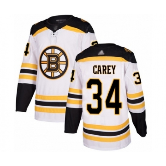 Men's Boston Bruins #34 Paul Carey Authentic White Away Hockey Jersey