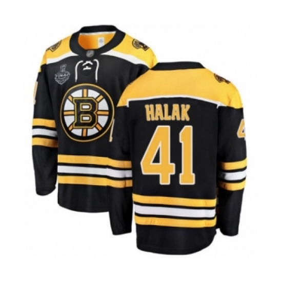 Men's Boston Bruins #41 Jaroslav Halak Authentic Black Home 2019 Stanley Cup Final Bound Hockey Jersey