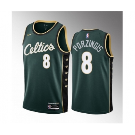 >Men's Boston Celtics #8 Kristaps Porzingis Green2023 Draft City Edition Stitched Basketball Jersey