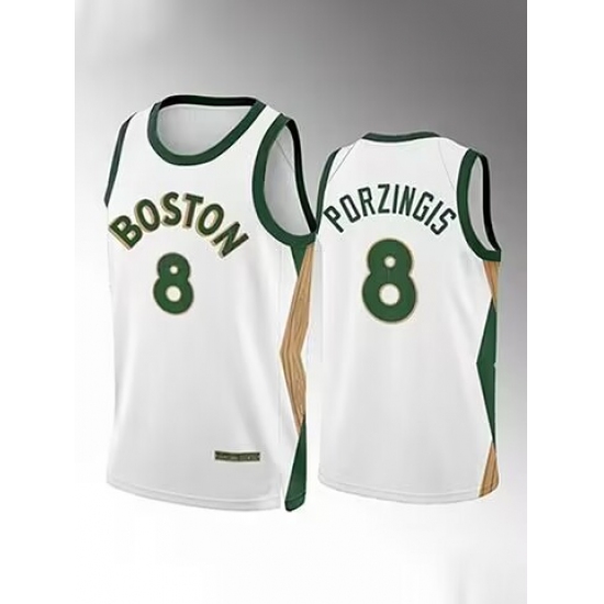 Men's Boston Celtics #8 Kristaps Porzingis White 2023 Draft Association Edition Stitched Basketball Jersey