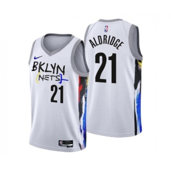 >Men's Brooklyn Nets #21 LaMarcus Aldridge 2022-23 White City Edition Stitched
