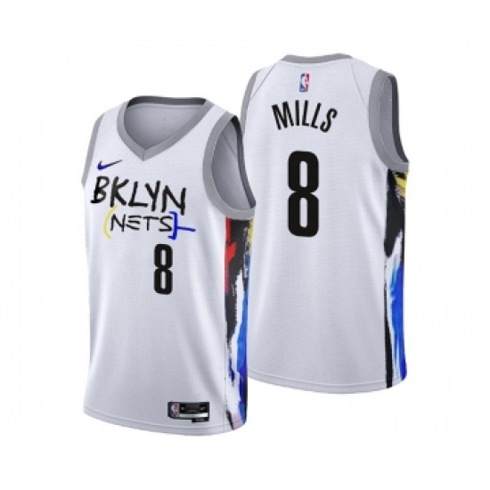 >Men's Brooklyn Nets #8 Patty Mills 2022-23 White City Edition Stitched Basketball Jersey