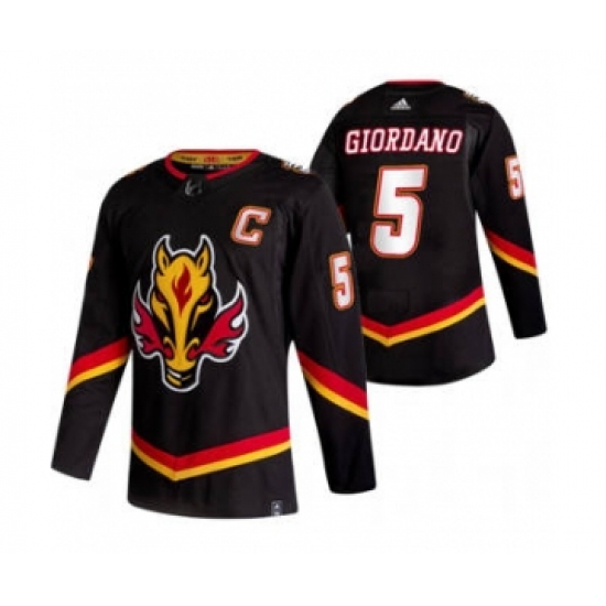 Men's Calgary Flames #5 Mark Giordano Black 2020-21 Reverse Retro Alternate Hockey Jersey