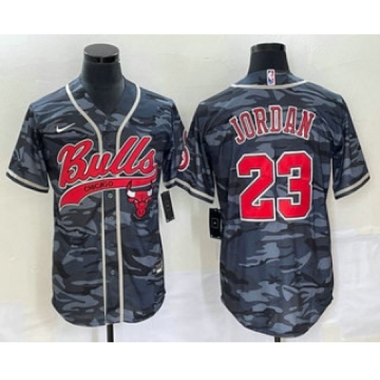 Men's Chicago Bulls #23 Michael Jordan Black Camo Cool Base Stitched Baseball Jersey