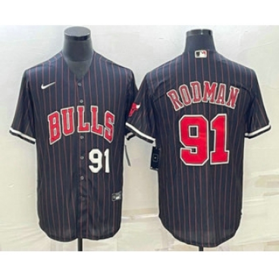 Men's Chicago Bulls #91 Dennis Rodman Black With Patch Cool Base Stitched Baseball Jersey
