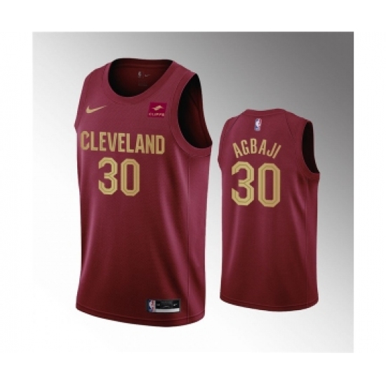 >Men's Cleveland Cavaliers #30 Ochai Agbaji Wine Icon Edition Stitched Basketball Jersey
