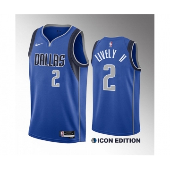 Men's Dallas Mavericks #2 Dereck Lively II Blue 2023 Draft Icon Edition Stitched Basketball Jersey