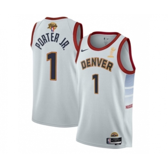 Men's Denver Nuggets #1 Michael Porter Jr. White 2023 Finals Earned Edition Stitched Basketball Jersey