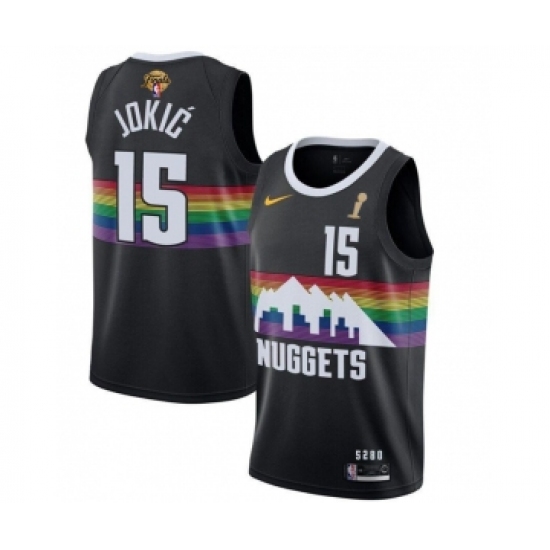 Men's Denver Nuggets #15 Nikola Jokic Black 2023 Finals Champions City Edition Stitched Basketball Jersey