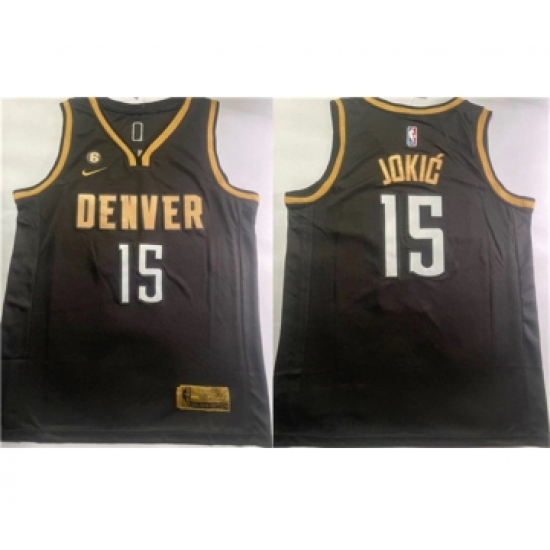 Men's Denver Nuggets #15 Nikola Jokic Black With NO.6 Stitched Jersey