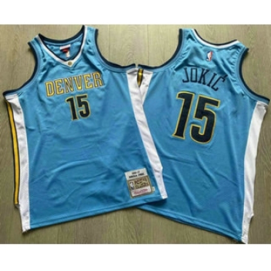 Men's Denver Nuggets #15 Nikola Jokic Blue Hardwood Classics Soul AU Stitched Throwback Jersey