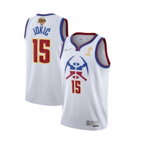 >Men's Denver Nuggets #15 Nikola Jokic White 2023 Finals Champions Earned Edition Stitched Basketball Jersey