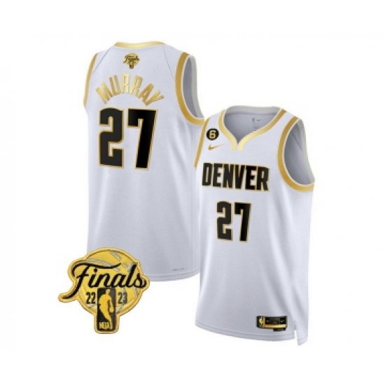 Men's Denver Nuggets #27 Jamal Murray White 2023 Finals Collection With NO.6 Stitched Basketball Jersey