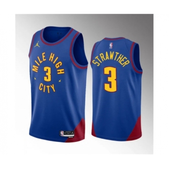 Men's Denver Nuggets #3 Julian Strawther Blue 2023 Draft Statement Edition Stitched Basketball Jersey