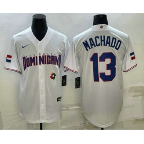 Men's Dominican Republic Baseball #13 Manny Machado 2023 White World Baseball Classic Stitched Jersey