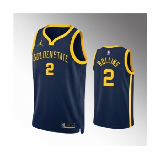 >Men's Golden State Warriors #2 Ryan Rollins Navy Statement Edition Stitched Jersey