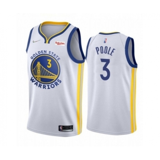 >Men's Golden State Warriors #3 Jordan Poole 2022 White 75th Anniversary Stitched Jersey