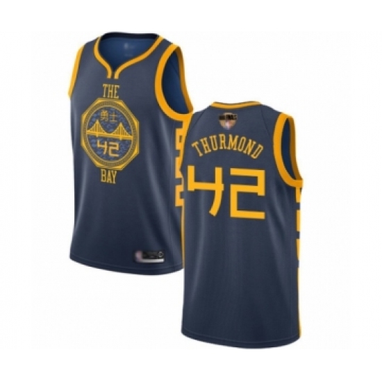 >Men's Golden State Warriors #42 Nate Thurmond Swingman Navy Blue Basketball 2019 Basketball Finals Bound Jersey - City Edition